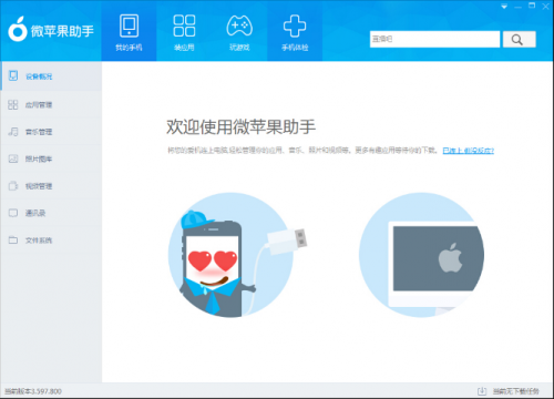 2、使用:安裝完成后,打開蘋果助手,根據(jù)您的需求進行同步數(shù)據(jù)、備份資料、下載應(yīng)用等操作。